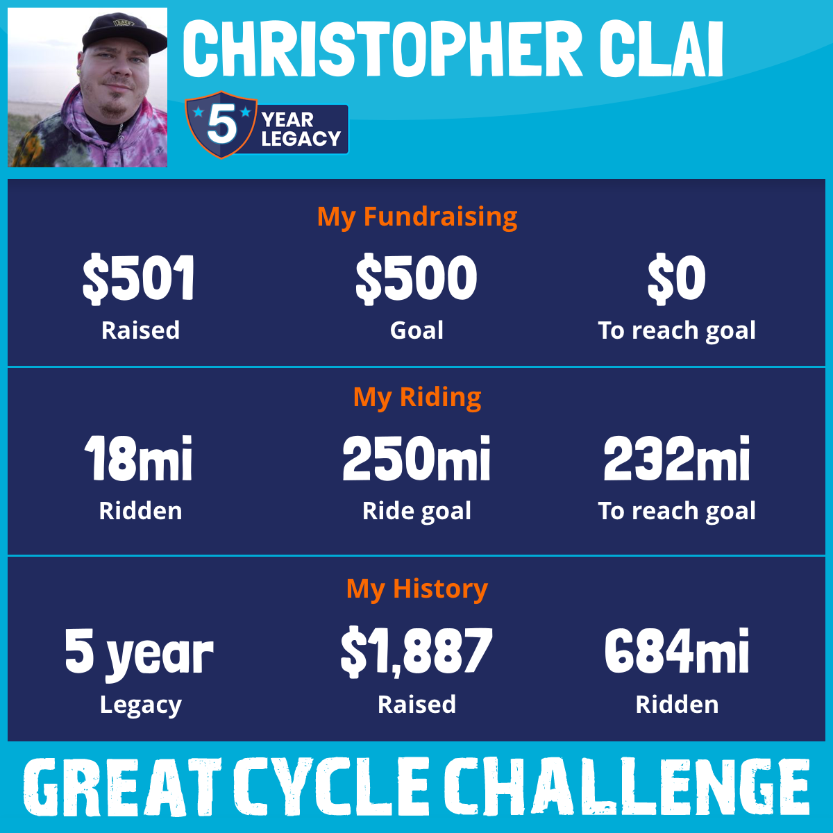 This September, I am participating in the Great Cycle Challenge to fight kids' cancer! Having multiple family members and close friends get diagnosed or pass away from Cancer makes me want to push toward finding a cure, for all forms of cancer.