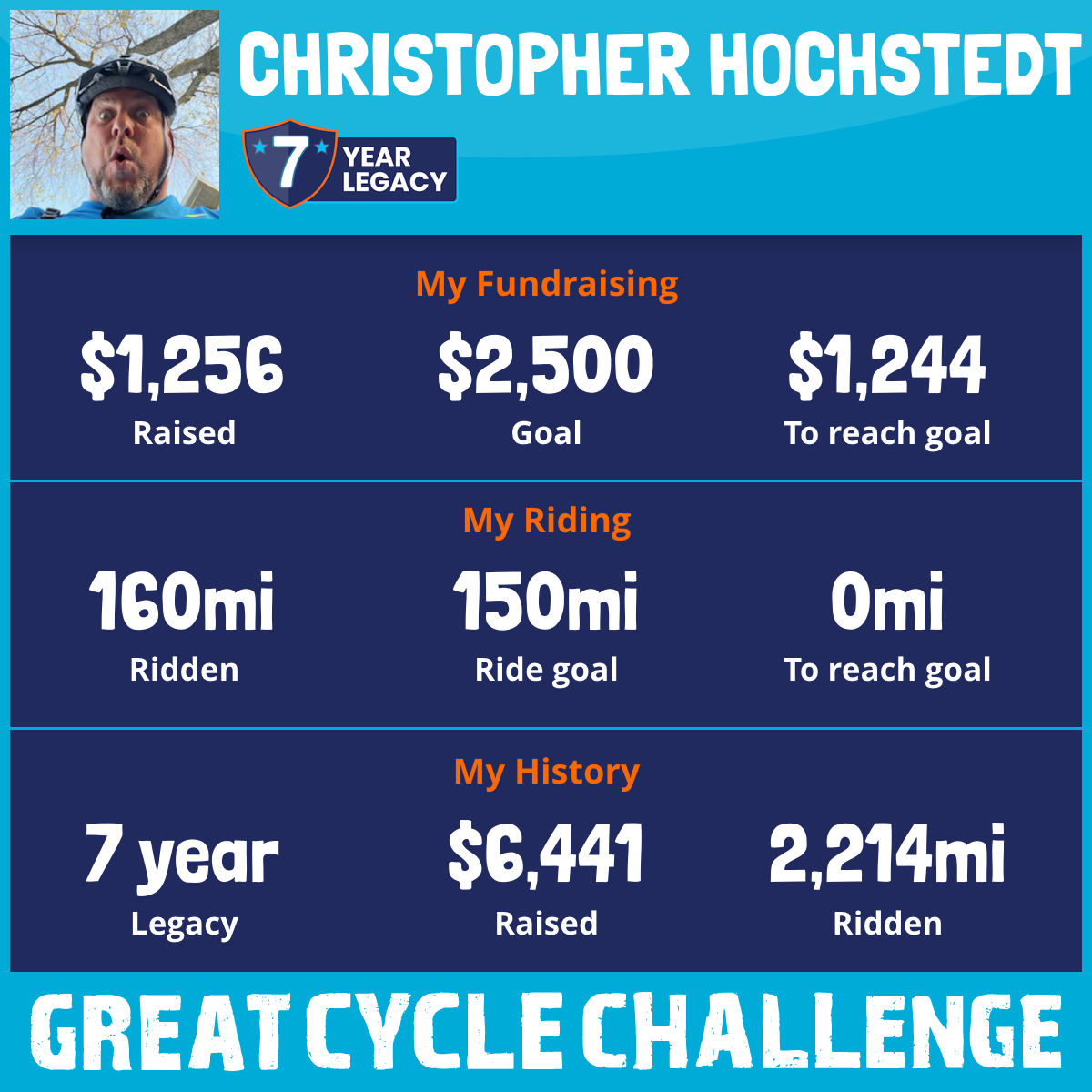 I am riding 150 mi in memory of Charles. Please sponsor me and support my challenge to fight kids' cancer and save little lives.