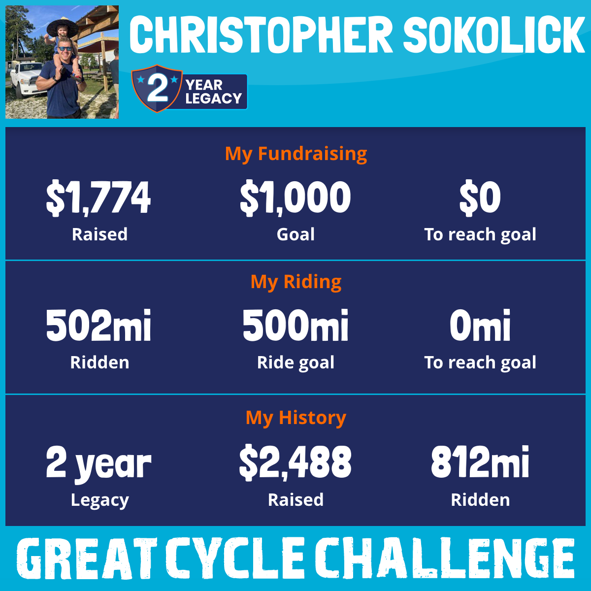 I am riding 500 mi in memory of my loved one, Loretta Zackowski. Please sponsor me and support my challenge to fight kids' cancer and save little lives.