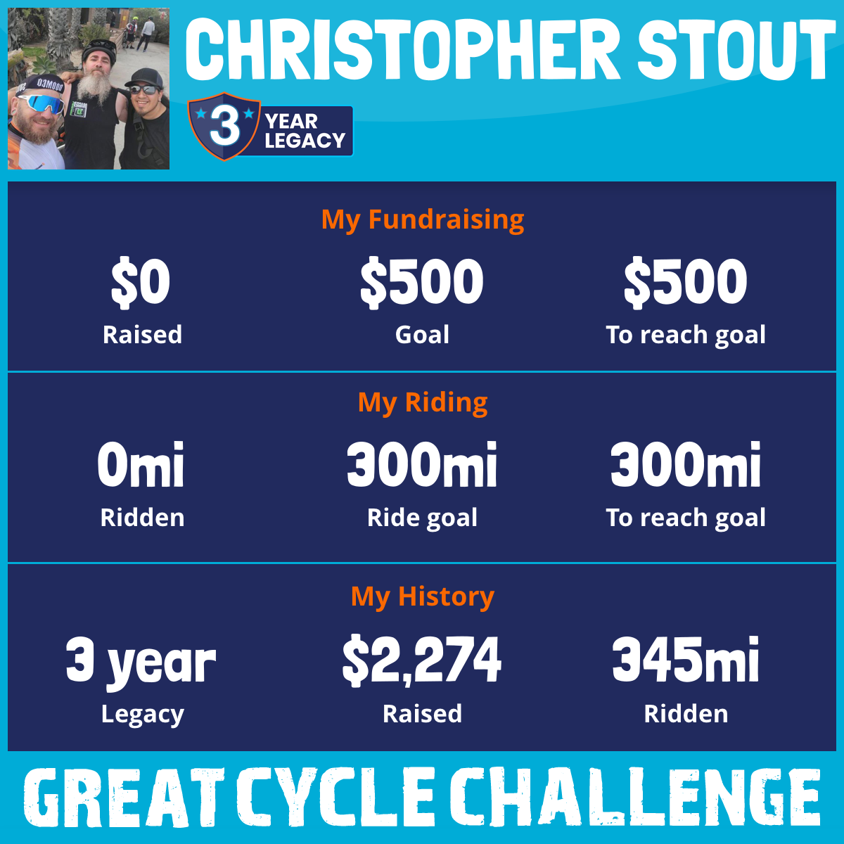 I've raised $0 My goal is $500 Donate Now