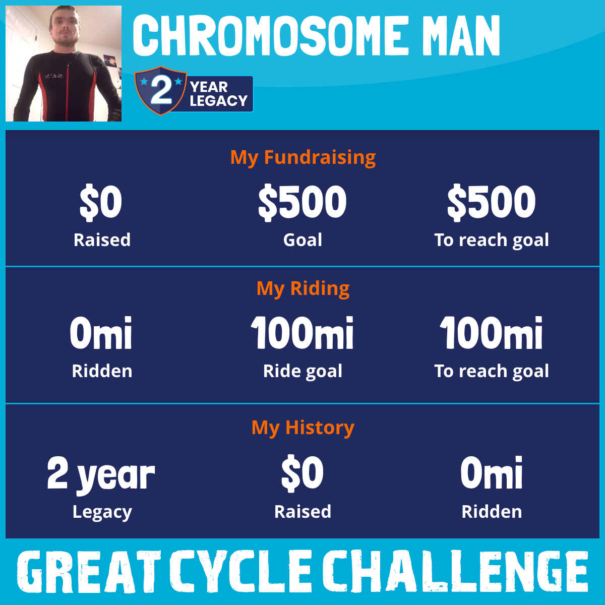 I've raised $0 My goal is $500 Donate Now