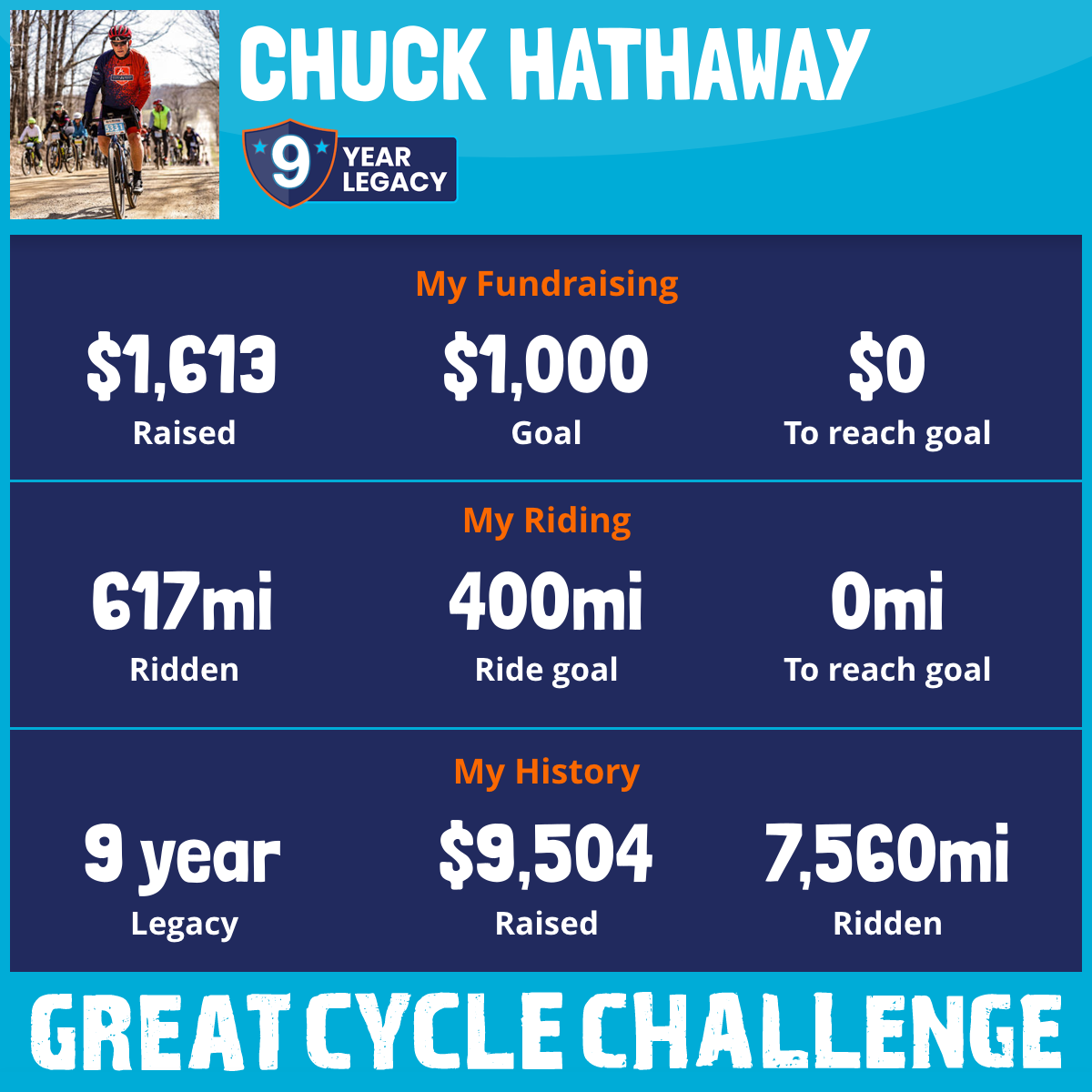 617 mi Ridden$1,613 Raised2025
