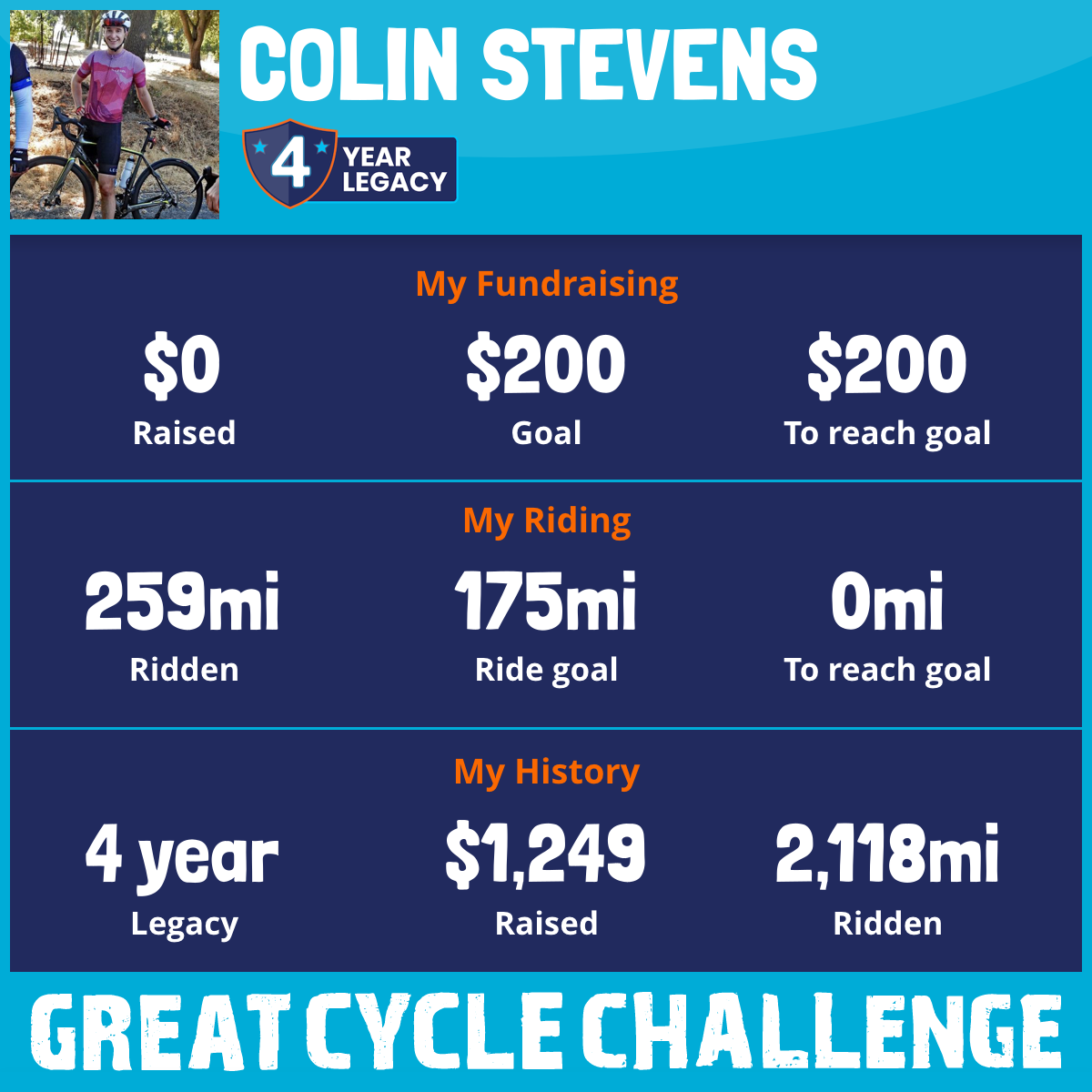 I am riding 175 mi to fight kids' cancer and save little lives. Please sponsor me to support my challenge!