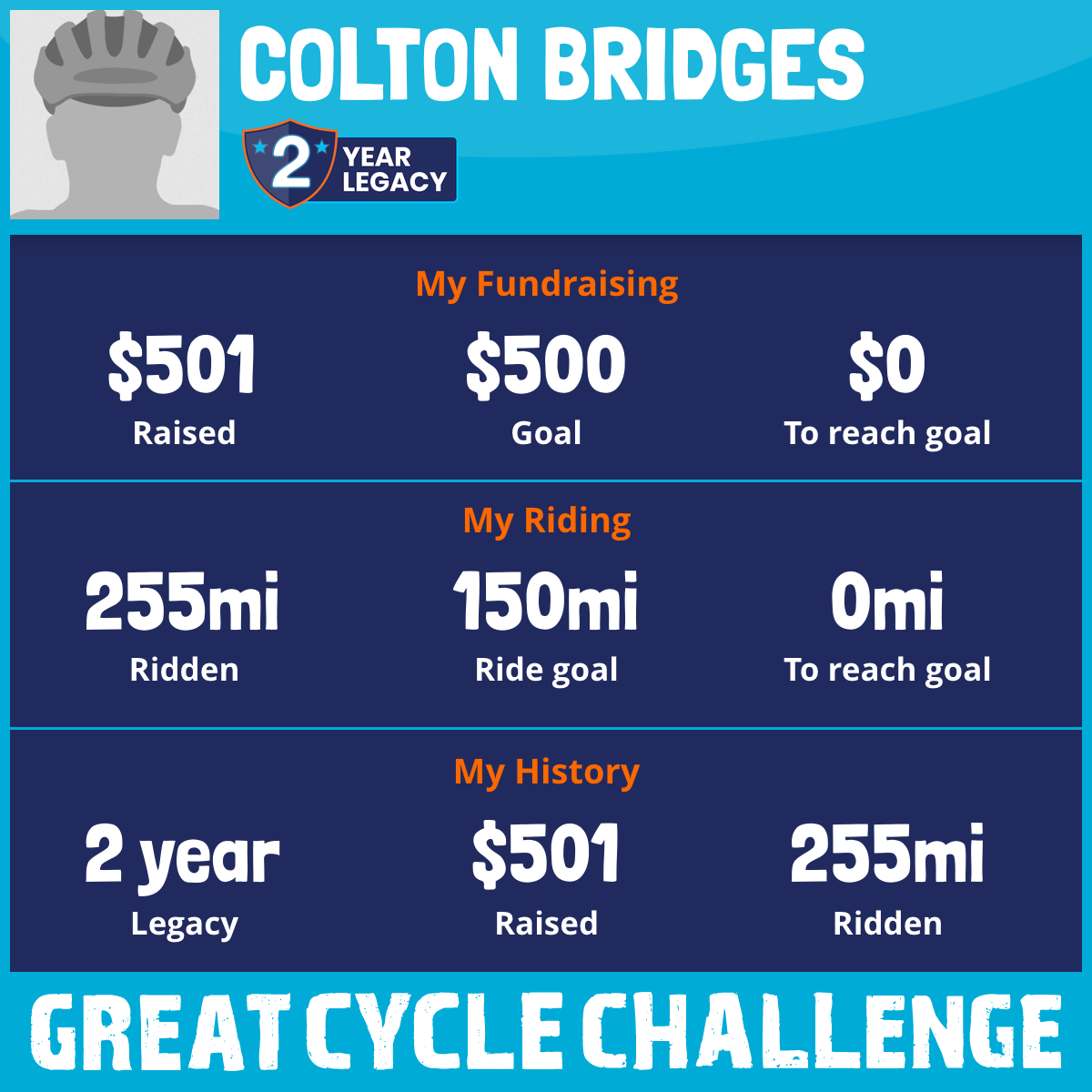 I am riding 150 mi to fight kids' cancer and save little lives. Please sponsor me to support my challenge!