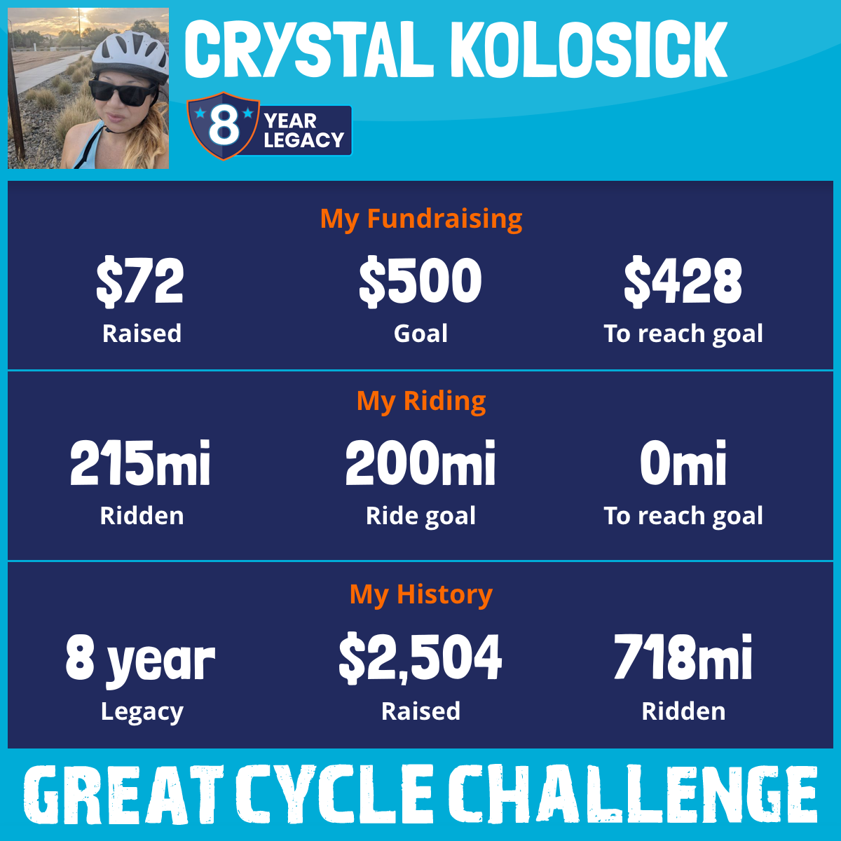 I am riding 200 mi to fight kids' cancer and save little lives. Please sponsor me to support my challenge!