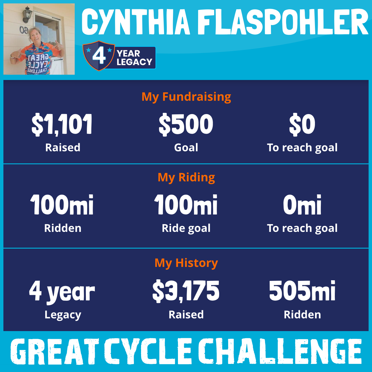 100 mi Ridden$1,101 Raised2025