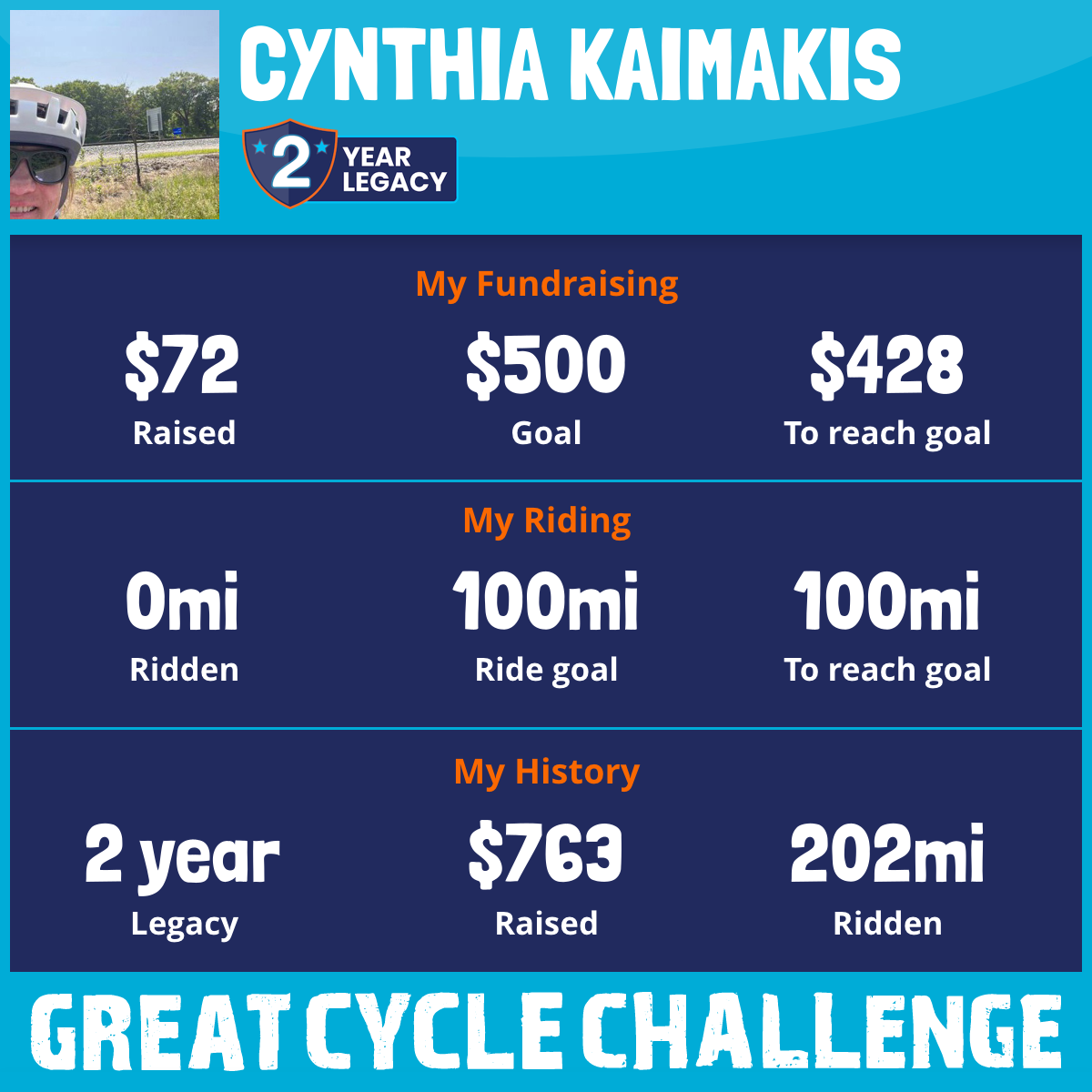 I am riding 100 mi to fight kids' cancer and save little lives. Please sponsor me to support my challenge!