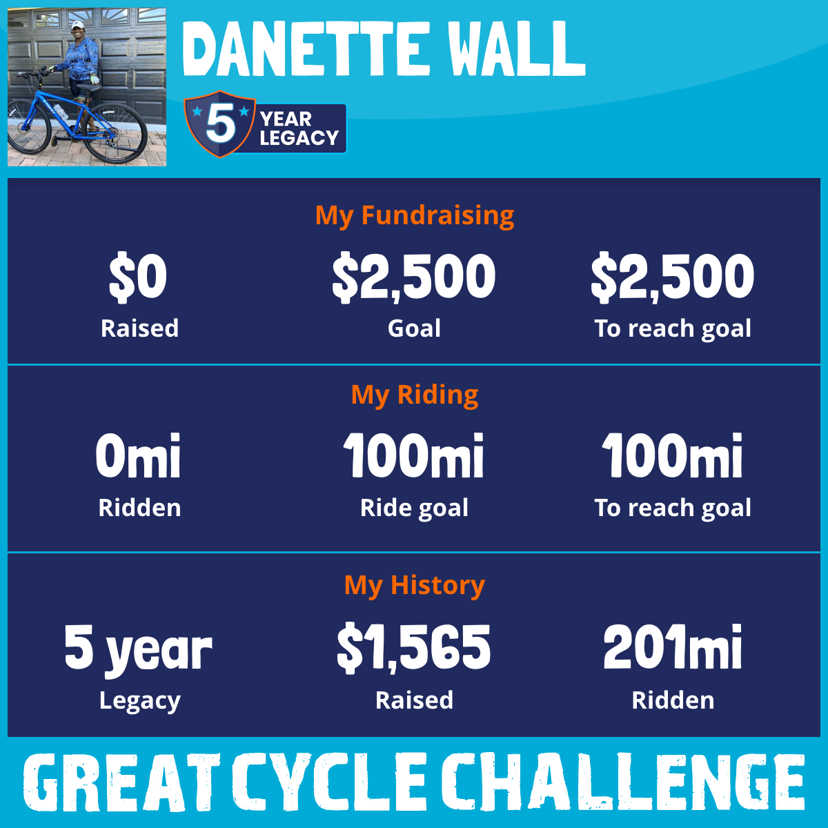 201 mi Ridden$1,373 Raised2020