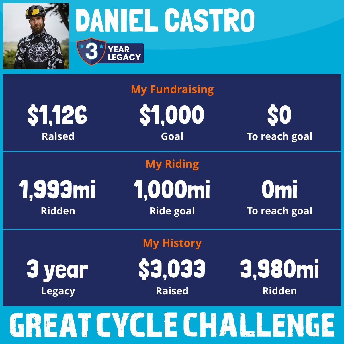 Any donation would be greatly appreciated. For those that know me, I dedicate each year to a charity called Aids Life Cycle which is a 7 day bike ride from San Francisco to Los Angeles covering 545 miles on bicycle. Every year I have raised around 6,000+ dollars in donations for the LGBT Center in LA and Aids Foundation on SF. This year is my first year signing up for the Great Cycle Challenge! I would like to match miles for donation for the woman that brought me into the world and who is fighting this illness with the upmost strength!