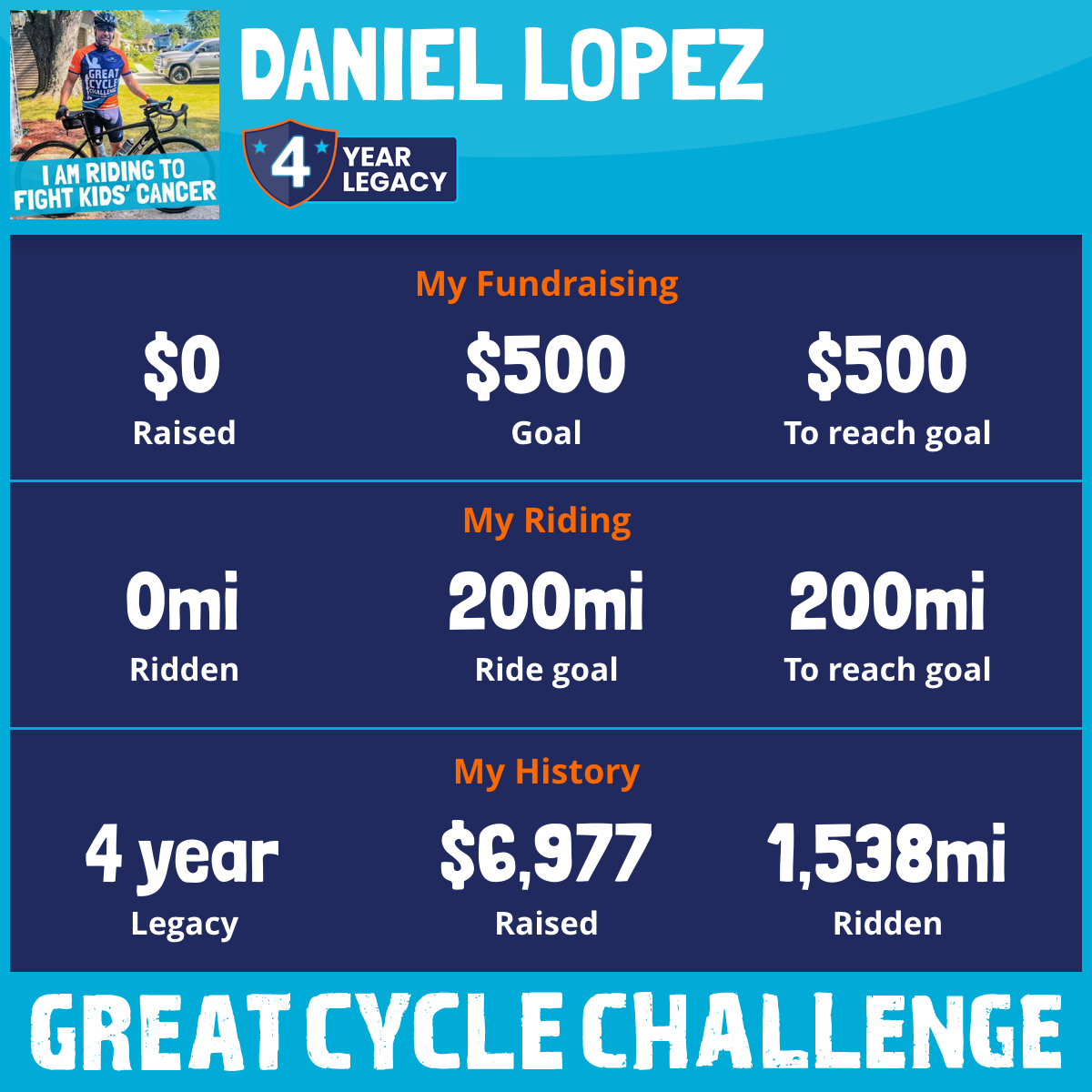 I'm riding for my aunt Marylin to keep fighting and smiling, for Papou Dino who fought hard before he was called home, and for Theo Evans (9yrs old), a cancer survivor.