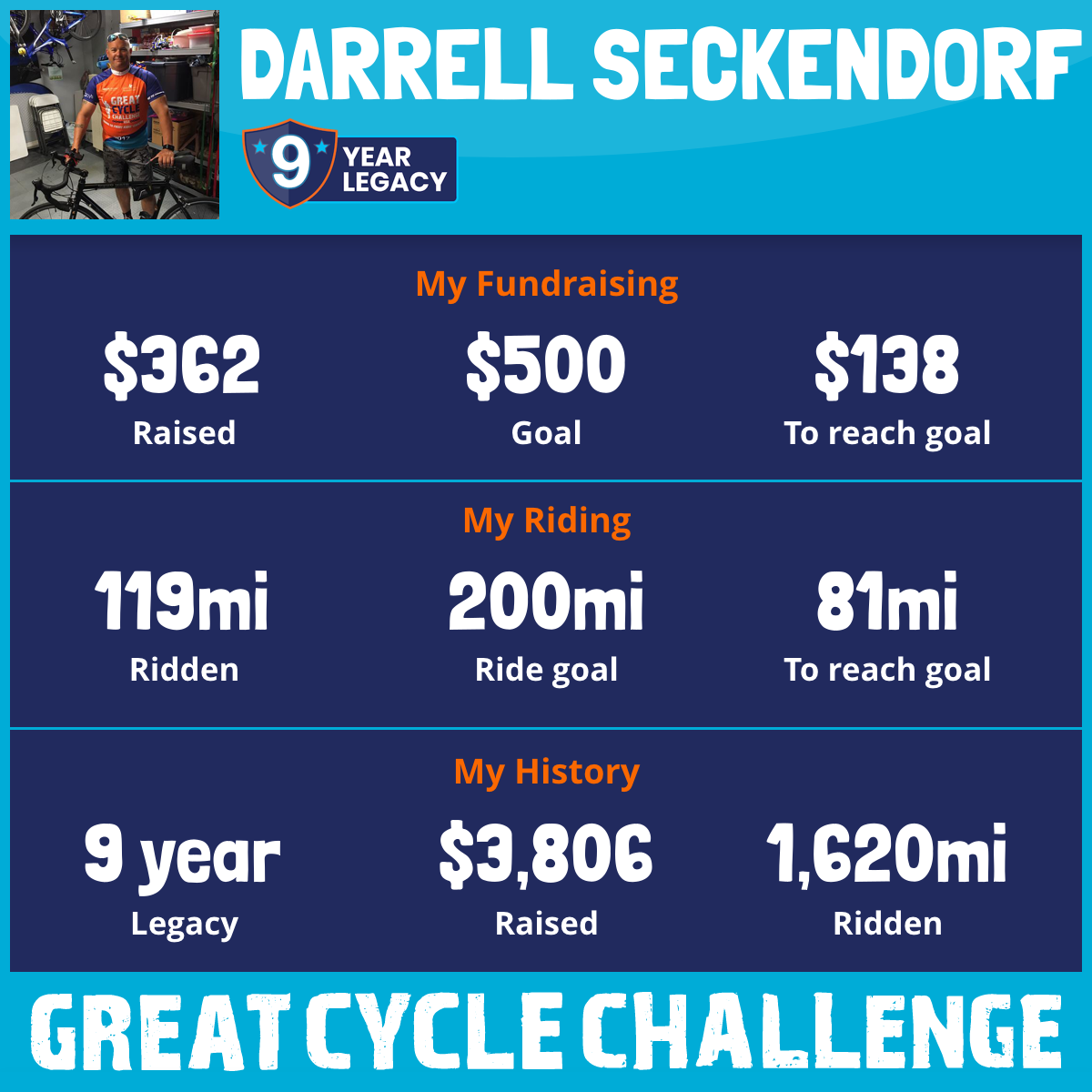 I am riding 200 mi for Mark Colwell. Please sponsor me and support my challenge to fight kids' cancer and save little lives.