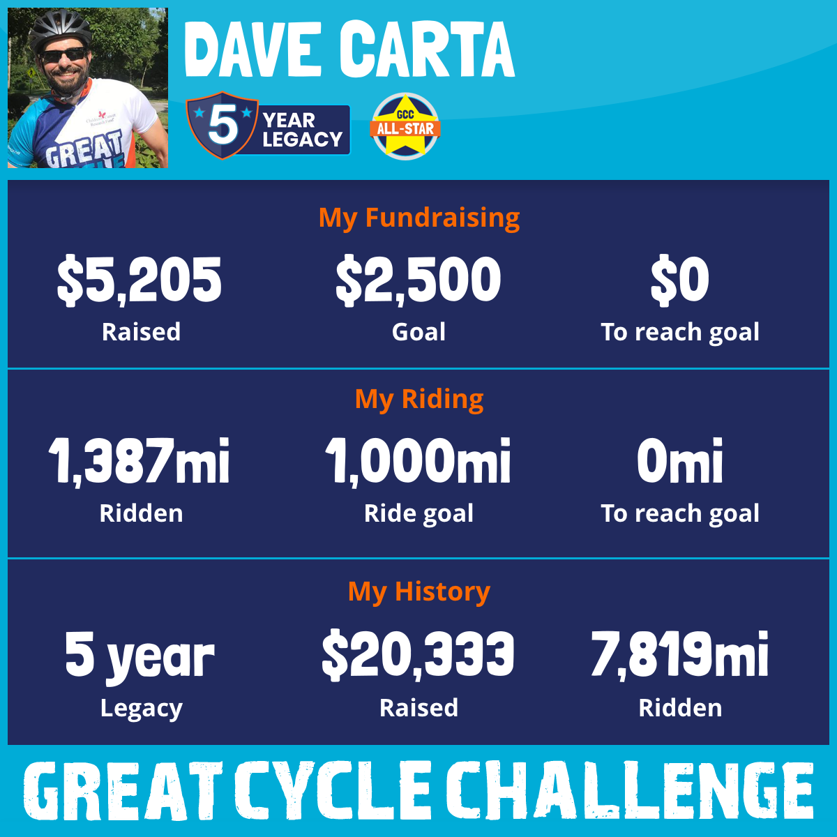 1,387 mi Ridden$5,205 Raised2025