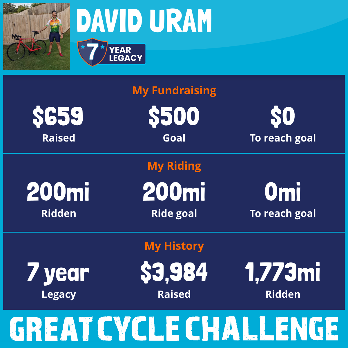 200 mi Ridden$659 Raised2025
