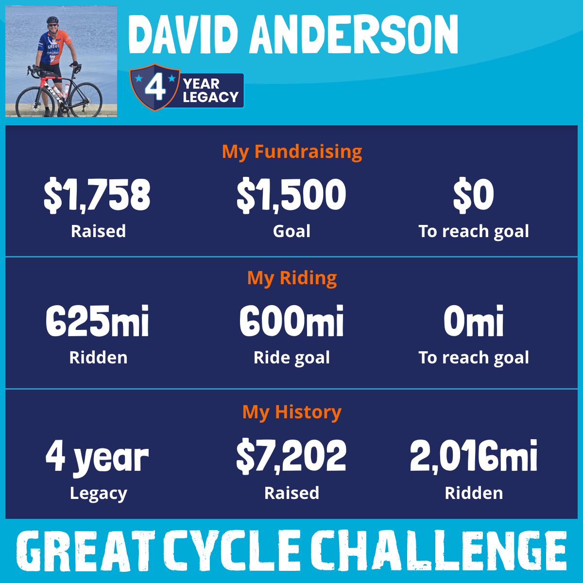 This September, I am taking part in the Great Cycle Challenge to fight kids' cancer! This will be my second year and my goal is to raise more money and ride more miles.