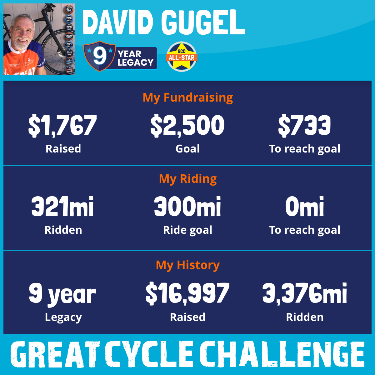 321 mi Ridden$1,767 Raised2025