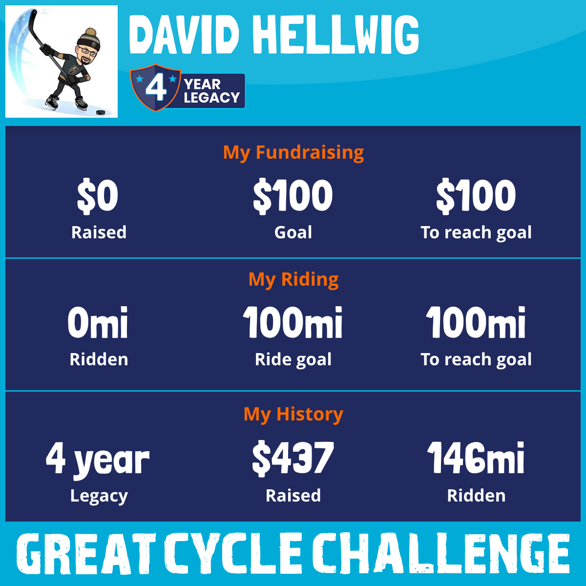 I've raised $0 My goal is $100 Donate Now
