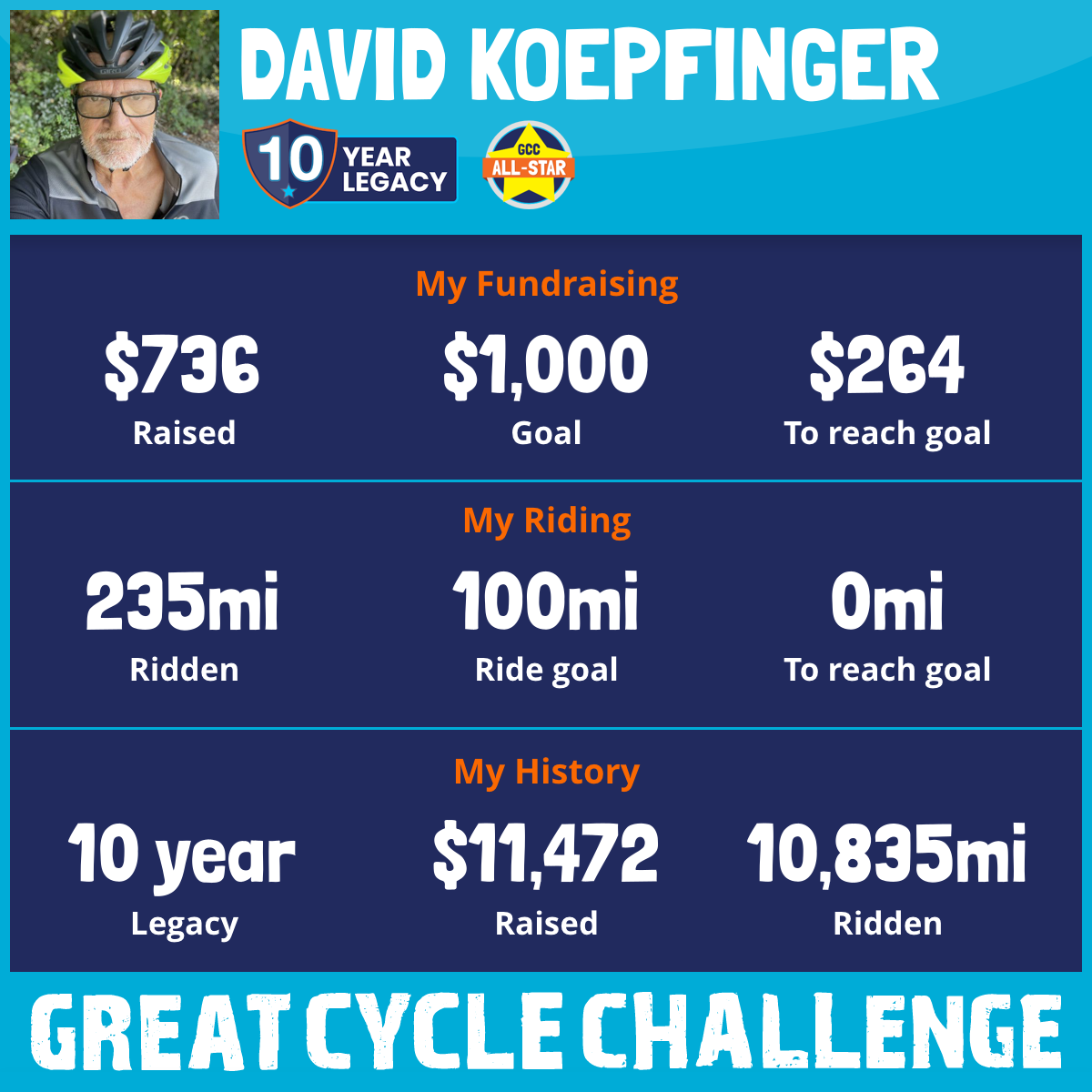 5,189 mi Ridden$1,500 Raised2015