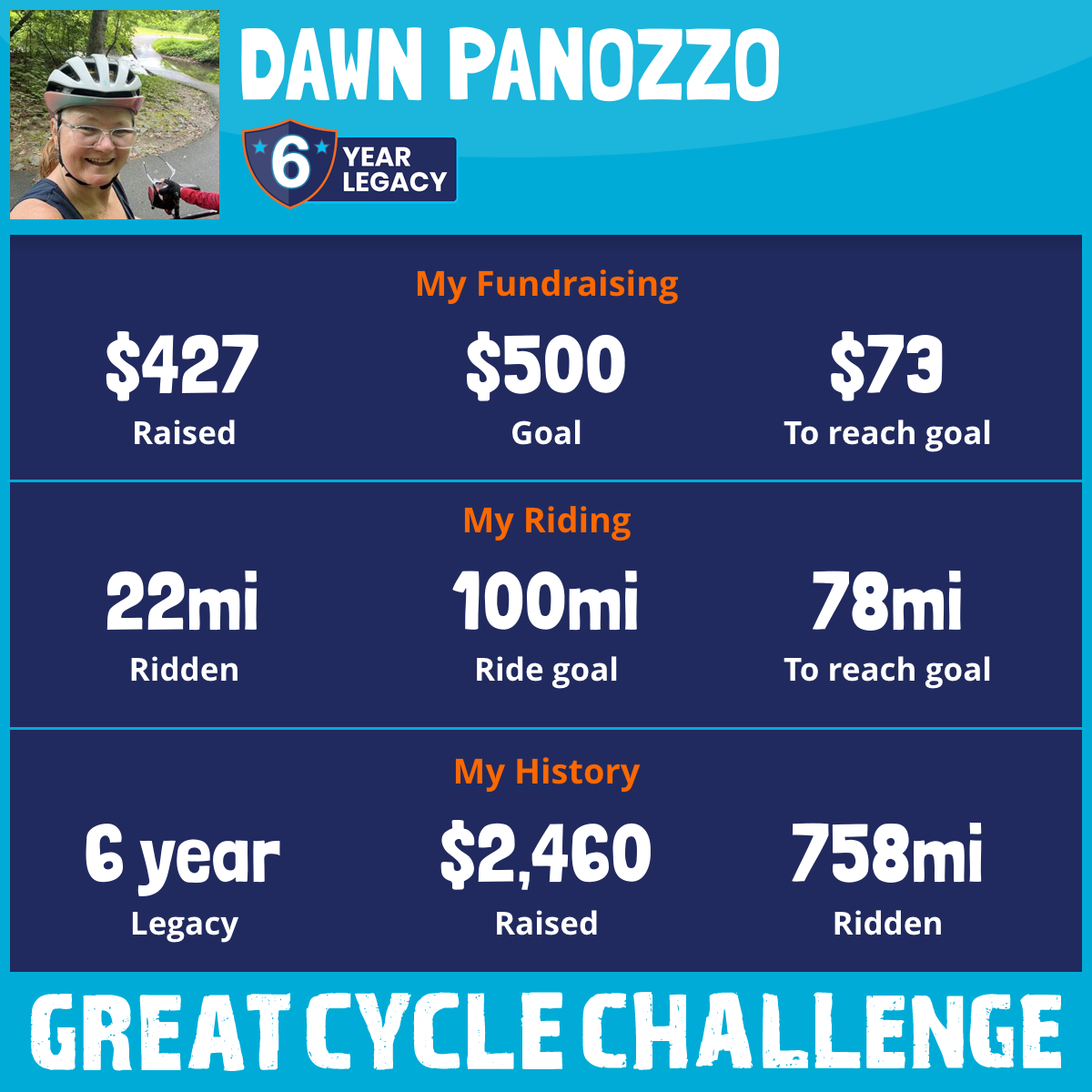 Kerrie started her fight last October. She started out being sick and after multiple trips to the hospital and 2 weeks being hospitalized. They figured out she had BCell Lymphoma and the fight truly began. She is a beautiful fighter and will kick cancers butt. I will ride the miles this year for you Kerrie. You keep fighting and I’ll keep peddling. Love you Kerrie!