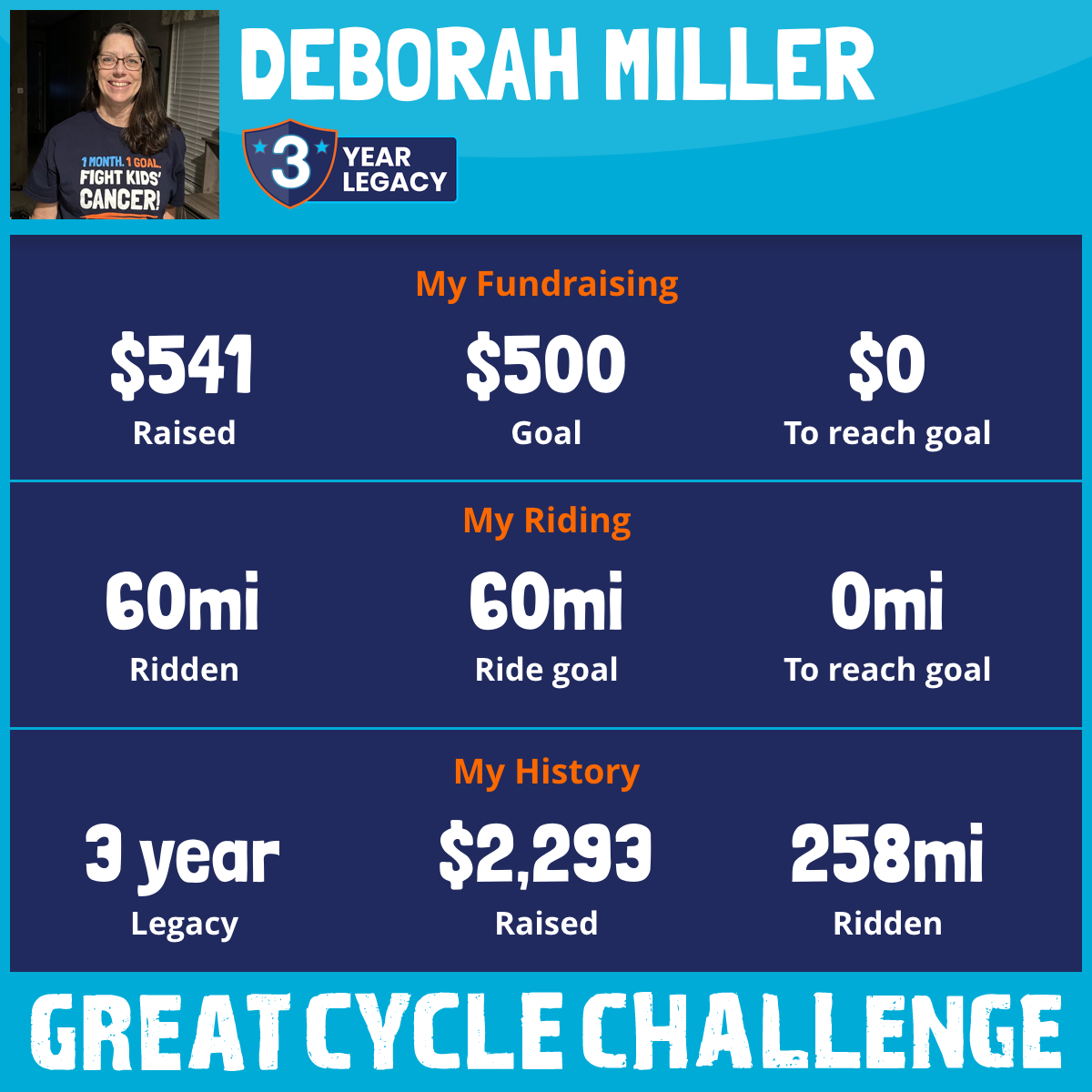 Even though Mom was not a child when she was diagnosed with cancer, it was still cancer. I saw how it affected her daily life and her ability to participate in things she would have liked to. By riding in Mom's memory I am hoping we can help children going through the same things Mom went through.