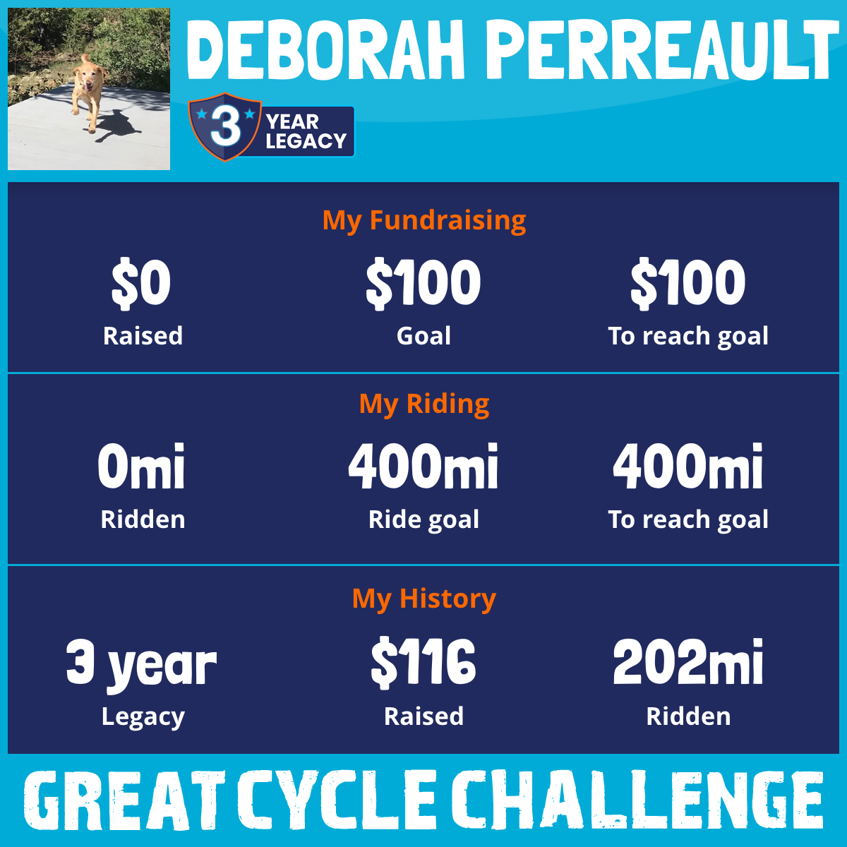 I am riding 400 mi in memory of Joey Perreault. Please sponsor me and support my challenge to fight kids' cancer and save little lives.