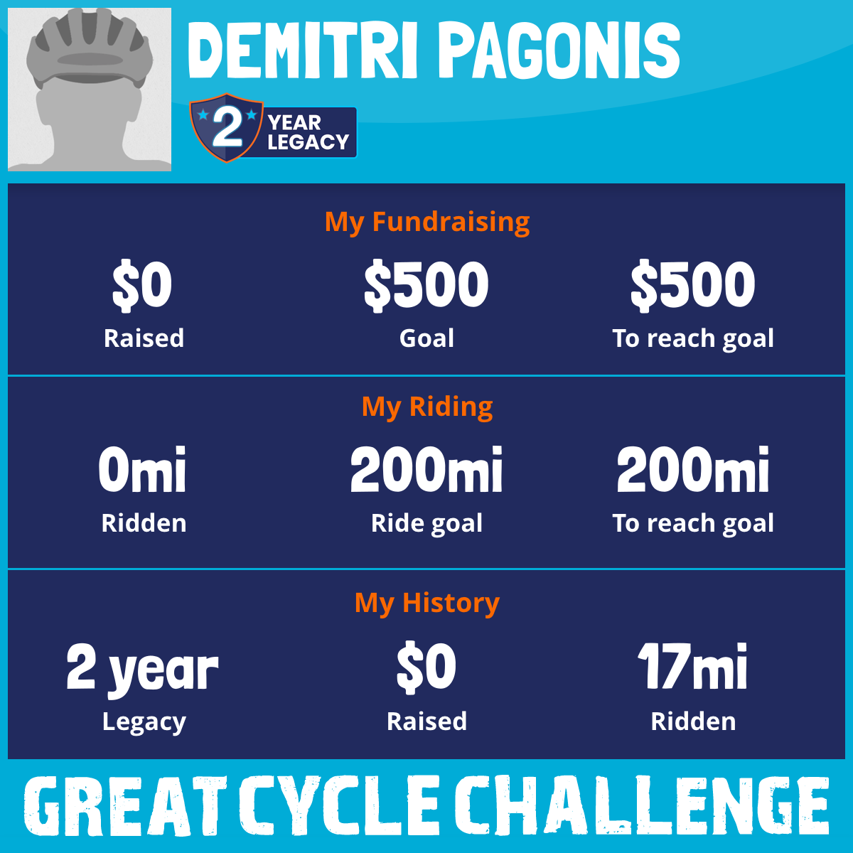 I am riding 200 mi in memory of Peter Pagonis. Please sponsor me and support my challenge to fight kids' cancer and save little lives.