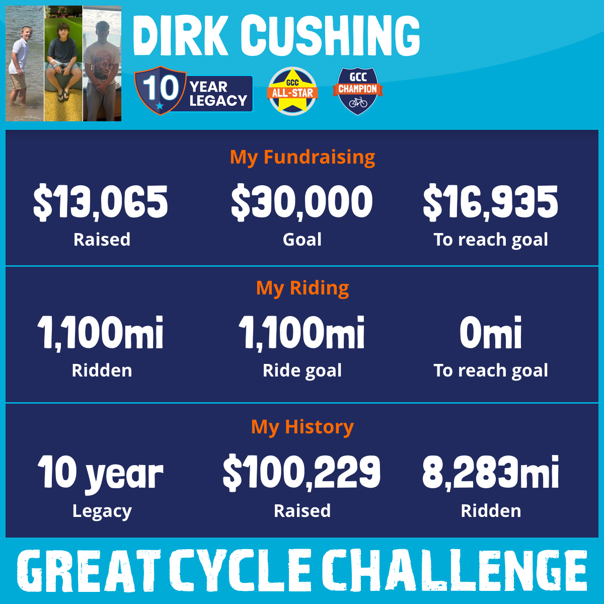 1,100 mi Ridden$13,065 Raised2025