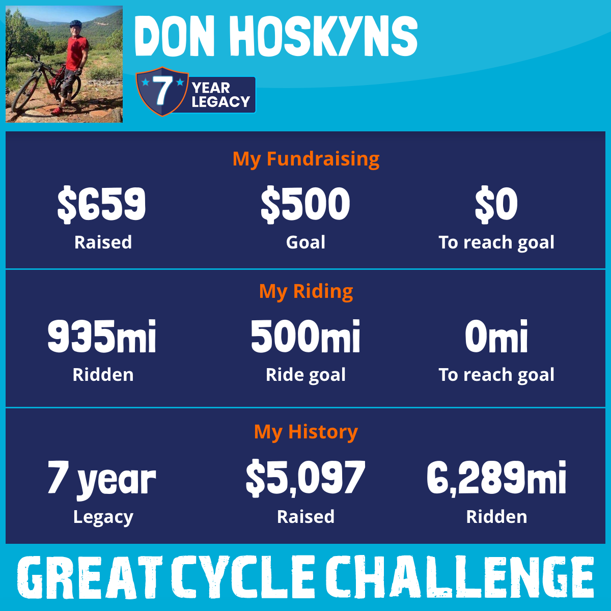 This September, I am taking part in my 7th year of the Great Cycle Challenge to fight kids' cancer!