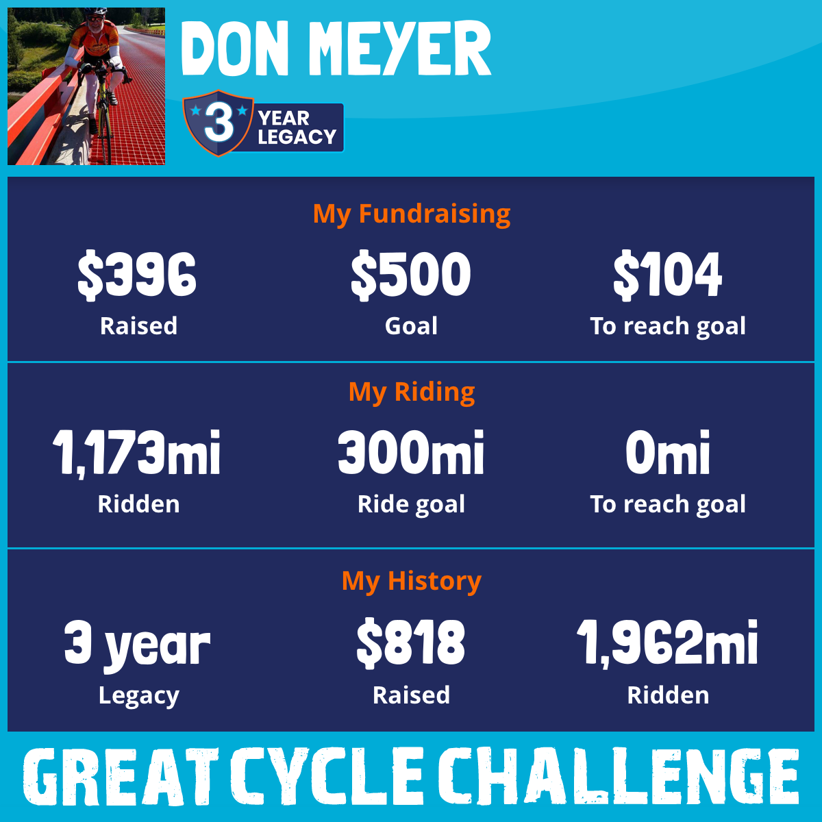 I am riding 300 mi in memory of Father-Pete, brothers-Wes & Al, uncle-Rich, cousin-Bob. Please sponsor me and support the fight to cure cancer.