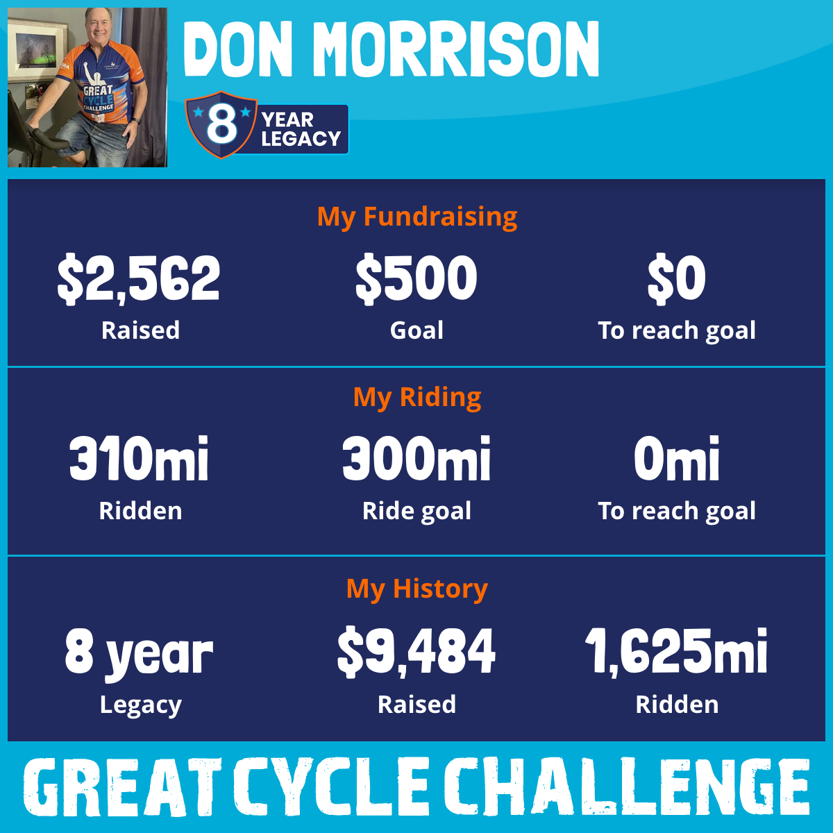 So I am raising funds through my challenge to help these kids and support Children's Cancer Research Fund to allow them to continue their work to develop lifesaving treatments and find a cure for childhood cancer. I’ll be logging these miles on my trusty Peloton! Great new way to participate!