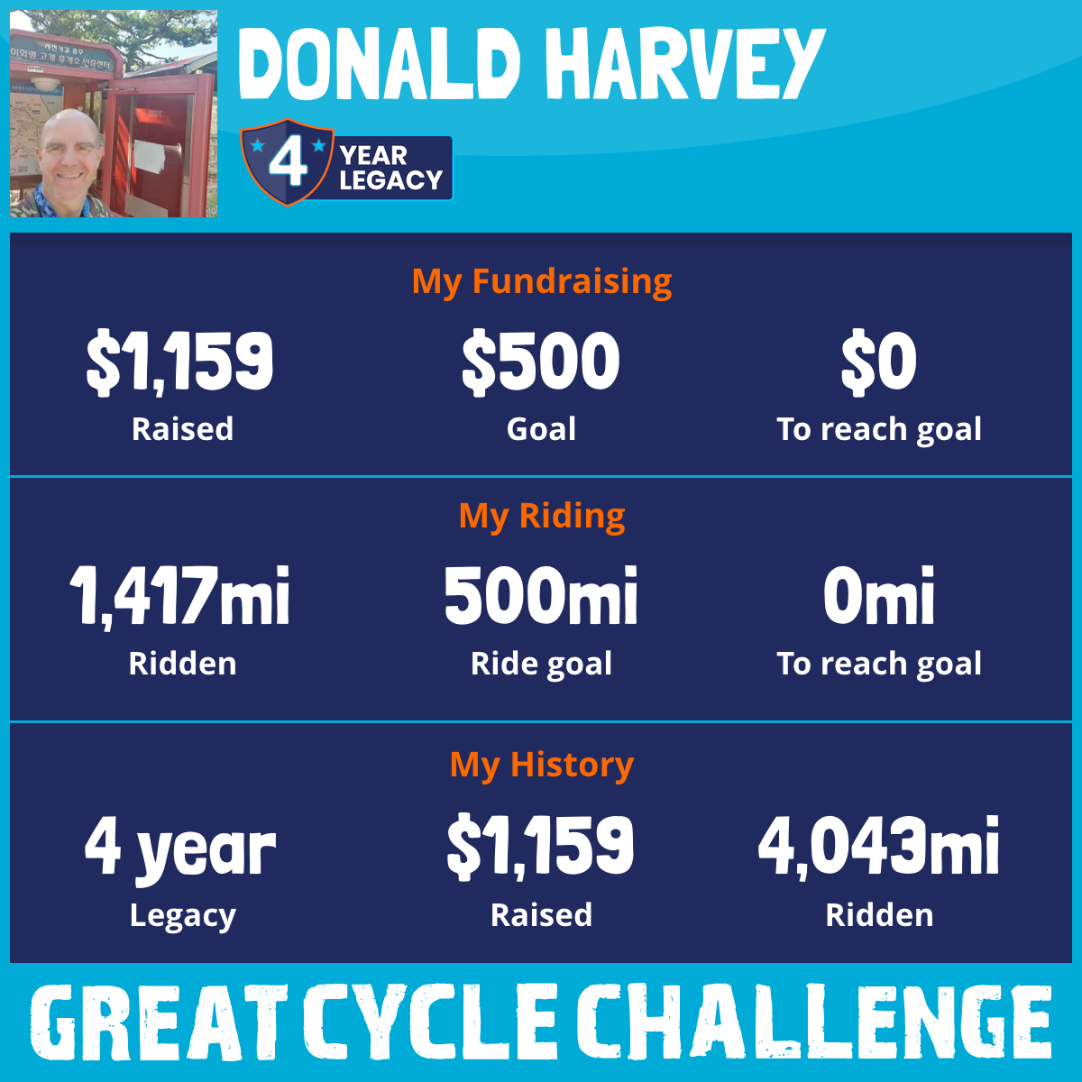I am riding 500 mi in memory of Sara Harvey. Please sponsor me and support my challenge to fight kids' cancer and save little lives.