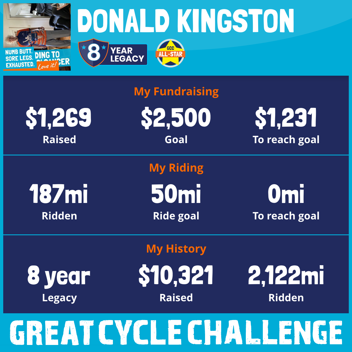 I am riding 39 mi for Dad and Tara. Please sponsor me and support my challenge to fight kids' cancer and save little lives.