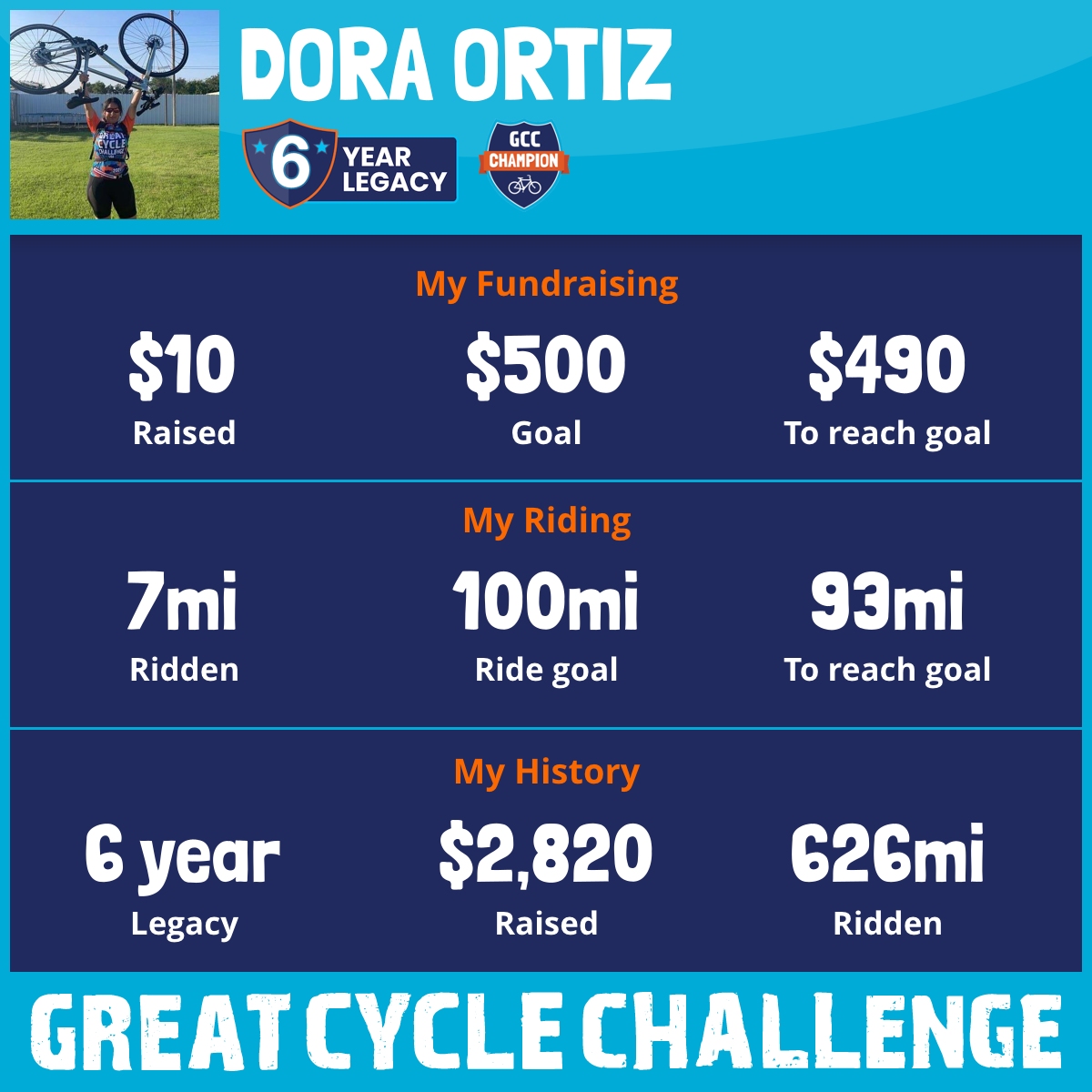 I am riding 100 mi in memory of my mum, Ernestina Montelongo. Please sponsor me and support my challenge to fight kids' cancer and save little lives.