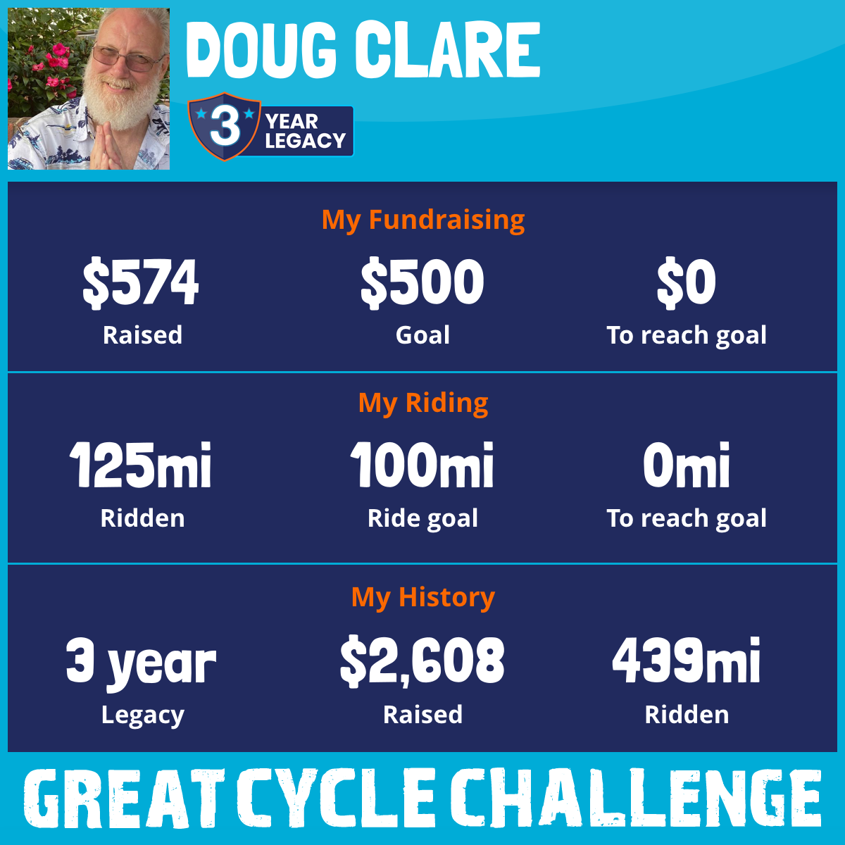 I'm trying to get out and tack a few more miles on today. Our weather has been amazing lately and I want to ride everyday I can, until it ends, but especially today, as my gesture of gratitude to all of you. BTW, FYI, Donations will continue to be excepted through October, if you know someone whom may be inclined to help out.