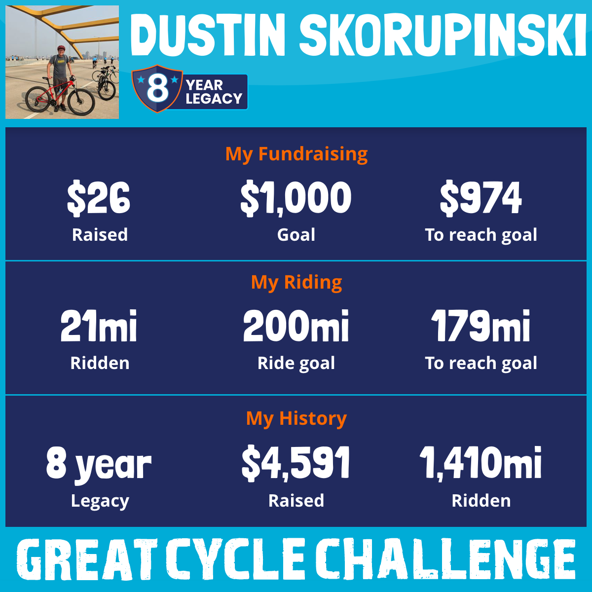 I am riding 200 mi in memory of Ron and Judy. Please sponsor me and support my challenge to fight kids' cancer and save little lives.