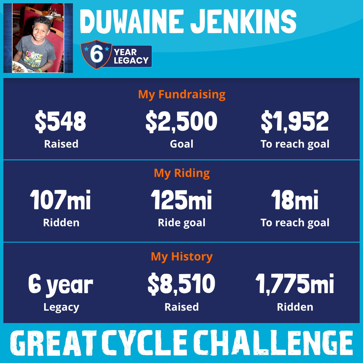 Hello! Thanks for thinking of Caden again. Caden has rung the bell! There's still so much more to do. He’s starting 3rd Grade this year! He's enjoying being outdoors, going to Natural Science Center here in Greensboro. We’re truly thankful that he’s thriving and enjoying being a kid to the fullest! Thank you for riding on behalf of our son and your continued support for Pediatric cancer research.