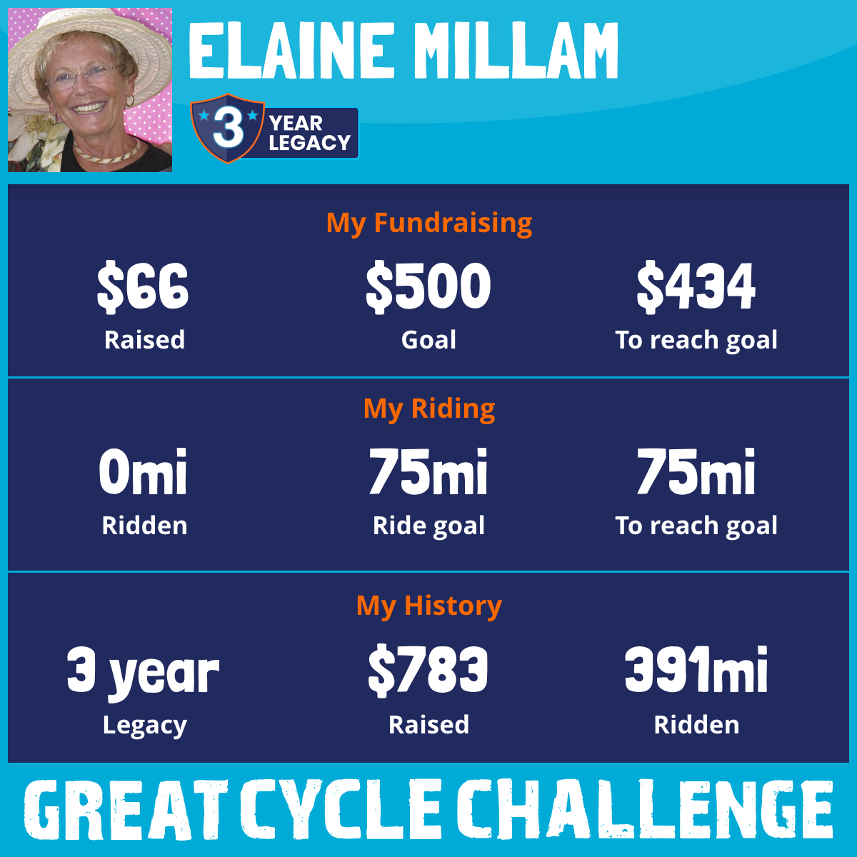 I am riding 75 mi for Eila Howe. Please sponsor me and support my challenge to fight kids' cancer and save little lives.