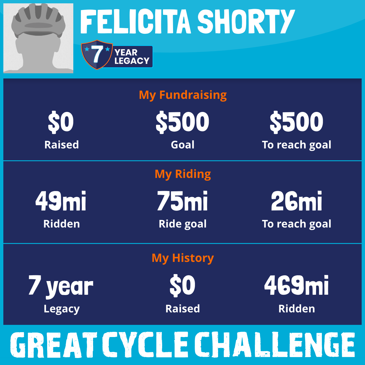 I am riding 75 mi in memory of Freda. Please sponsor me and support my challenge to fight kids' cancer and save little lives.