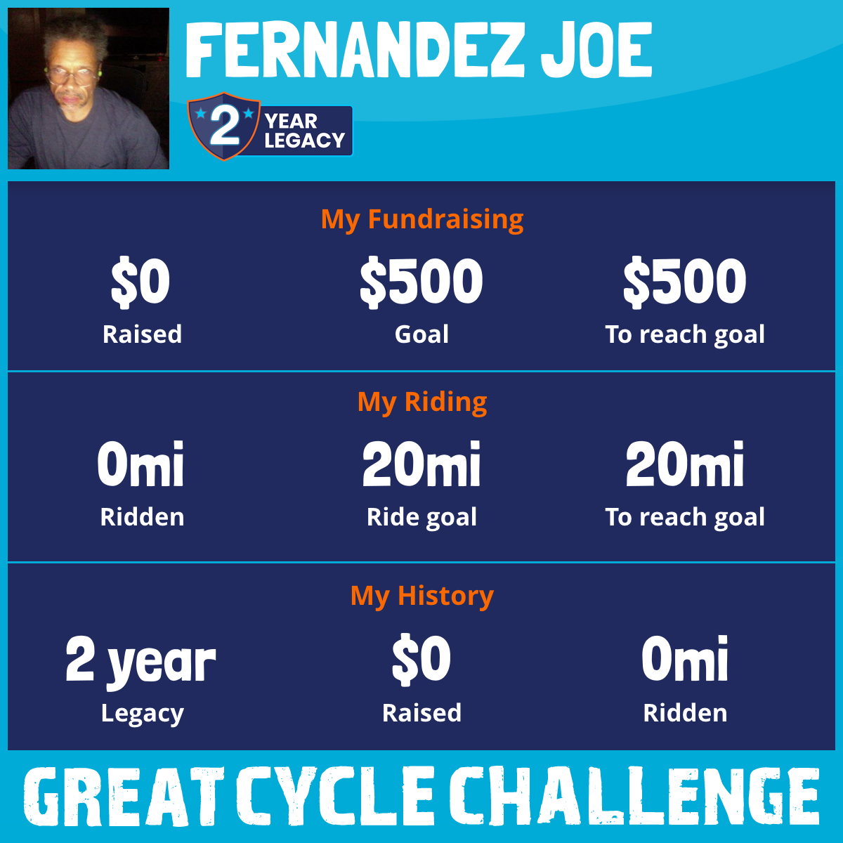I am riding 20 mi for concepcion. Please sponsor me and support my challenge to fight kids' cancer and save little lives.