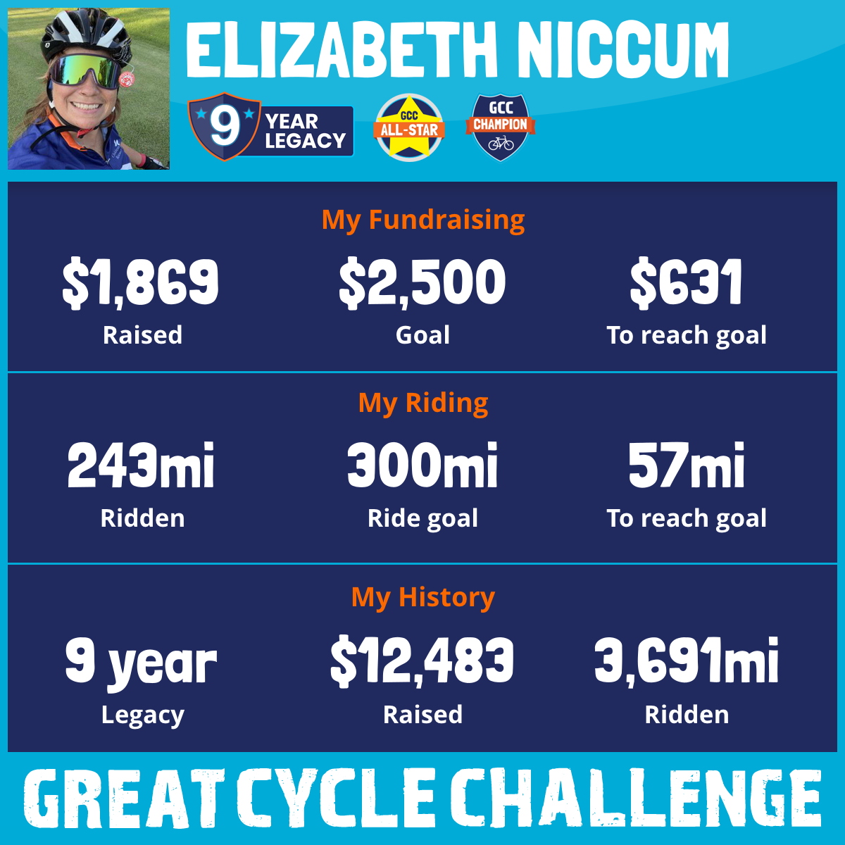 243 mi Ridden$1,869 Raised2025