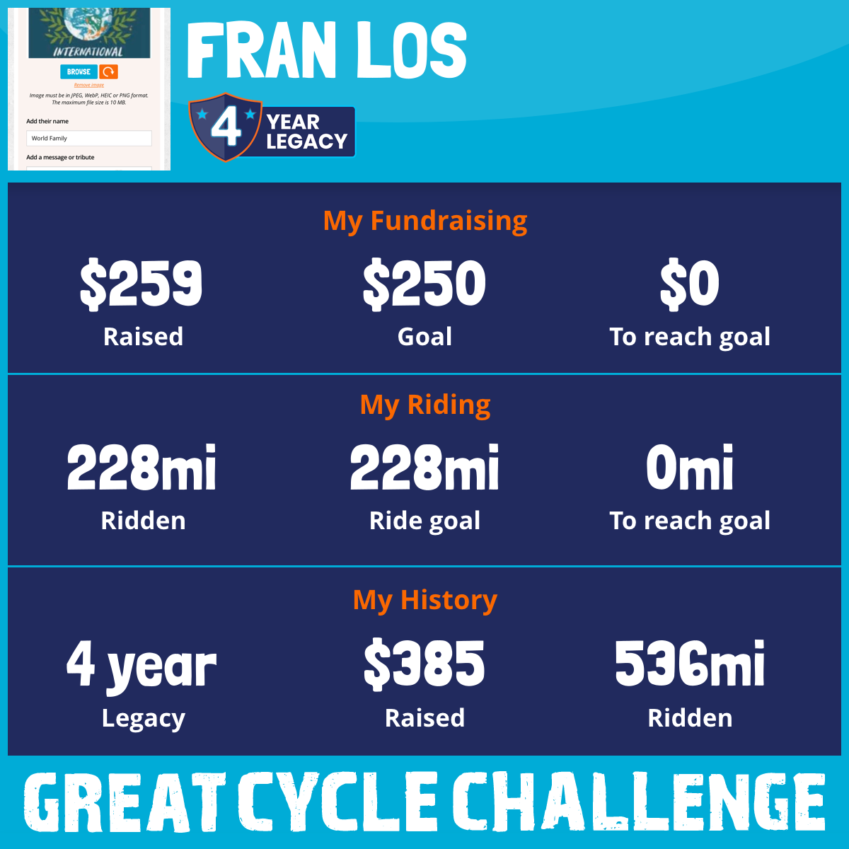 18 Sep 2025There’s more miles ridden in past years … sorry I’m bad with tech… all goals ridding were met … and hopefully my care was known … always constant in my prayers ….