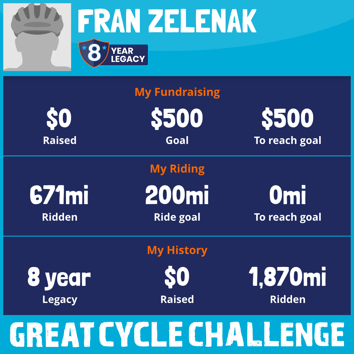 I am riding 200 mi to fight kids' cancer and save little lives. Please sponsor me to support my challenge!