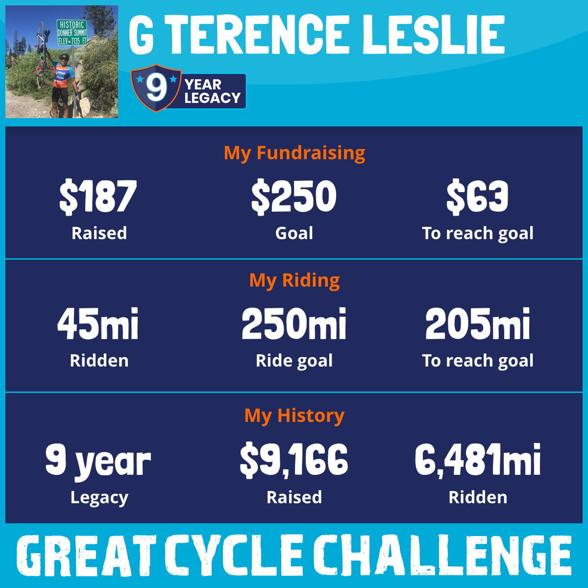 I am riding 250 mi for The kids. Please sponsor me and support my challenge to fight kids' cancer and save little lives. I injured my knee so I cannot ride 400