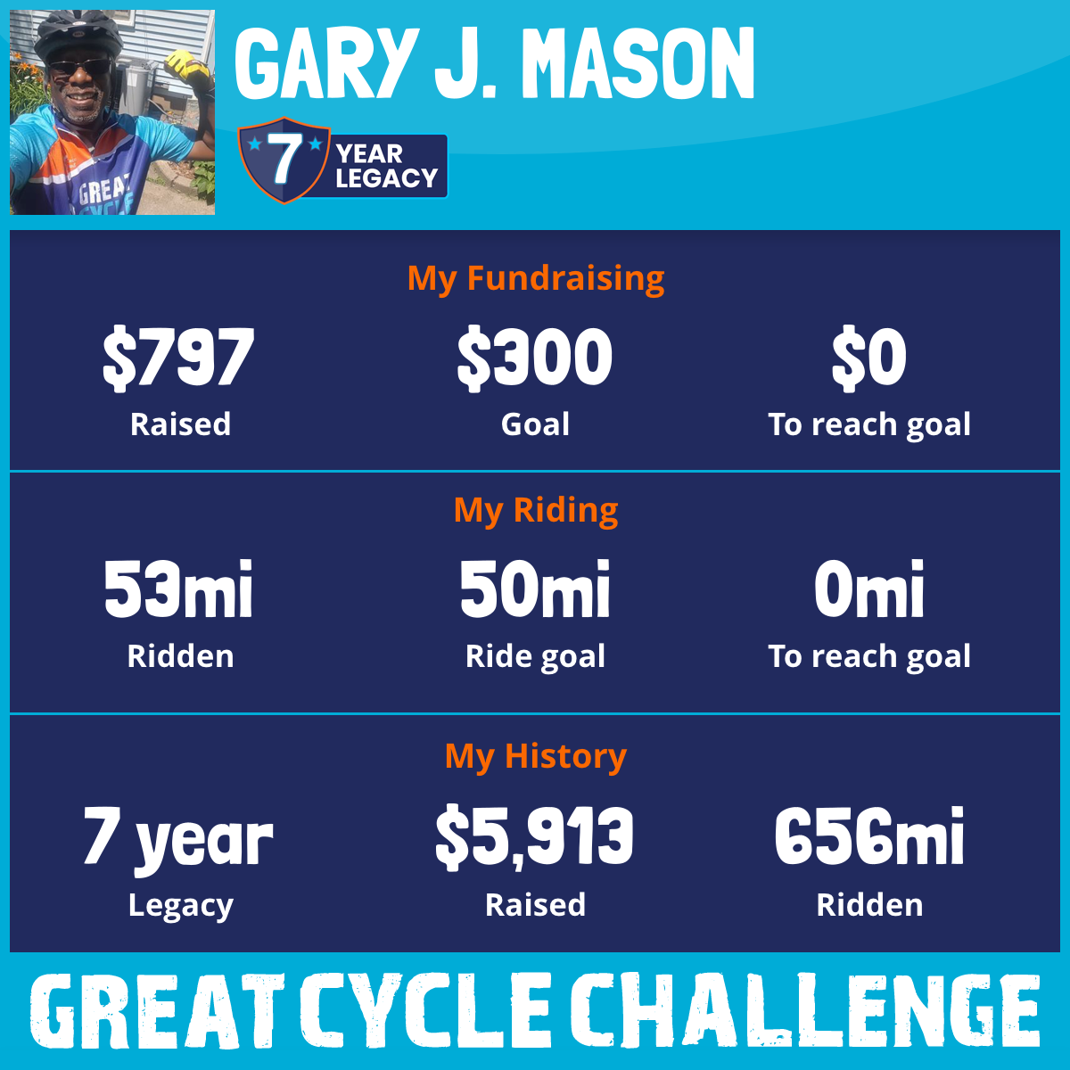 I am riding 50 mi for my wife, Chyrell. Please sponsor me and support my challenge to fight kids' cancer and save little lives.