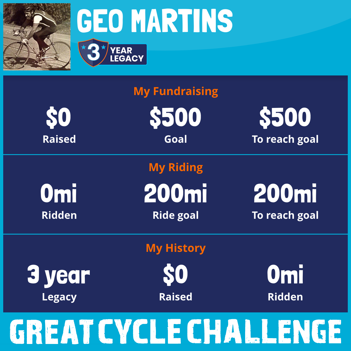 I've raised $0 My goal is $500 Donate Now