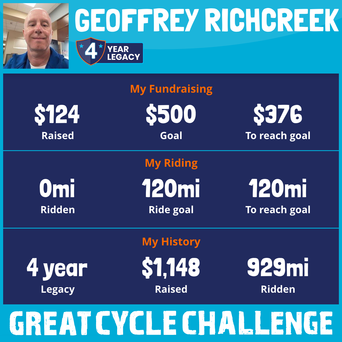 I've raised $124 My goal is $500 Donate Now