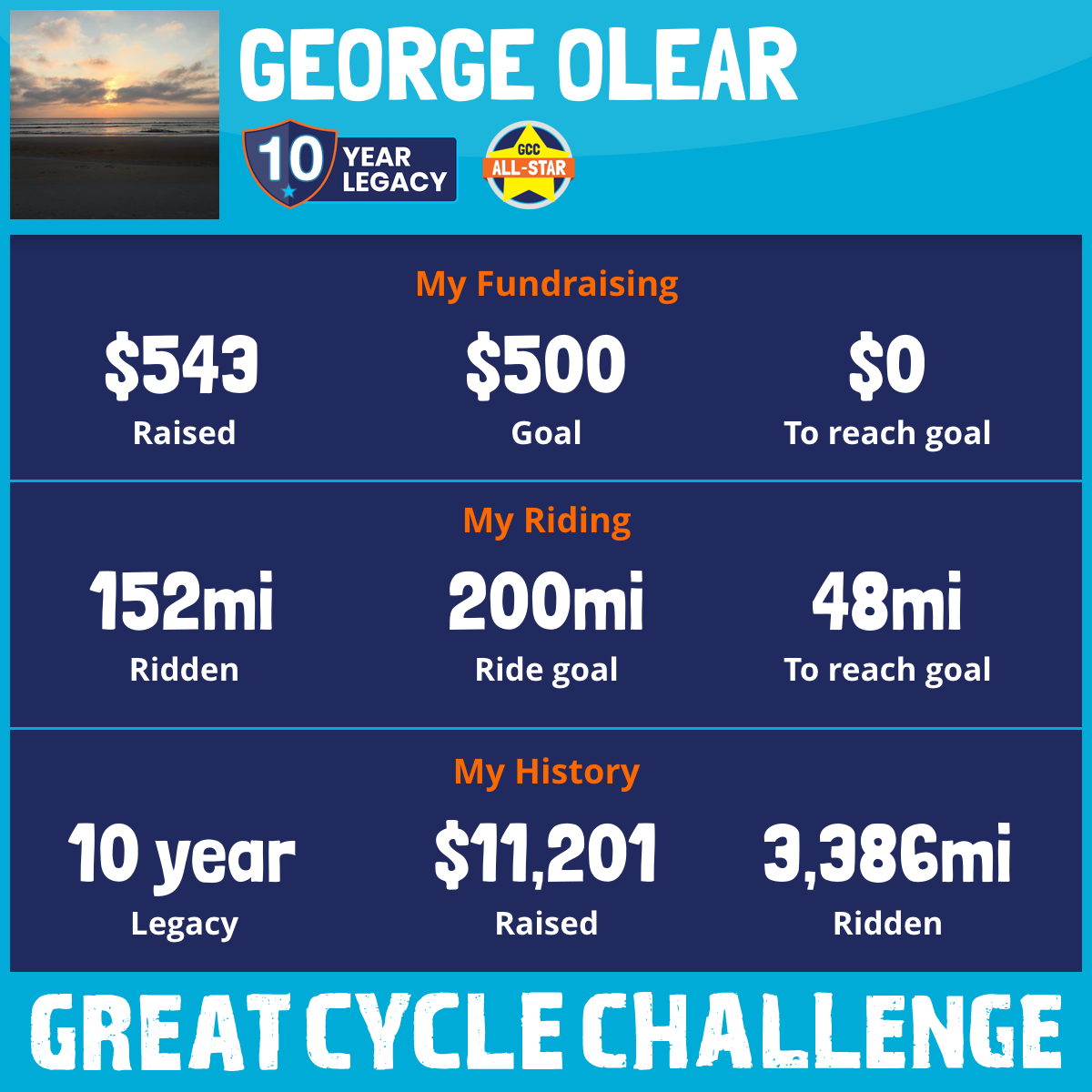 I am riding 200 mi in memory of JSO. Please sponsor me and support my challenge to fight kids' cancer and save little lives.