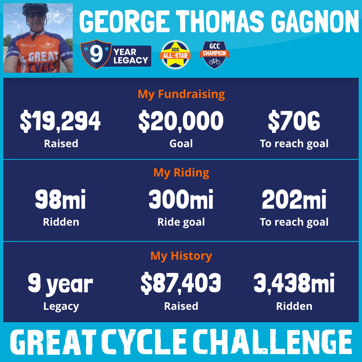 This September 2025, I am taking part in the Great Cycle Challenge to fight kids' cancer! This is my ninth-year riding and looking forward to having another successful fundraiser.