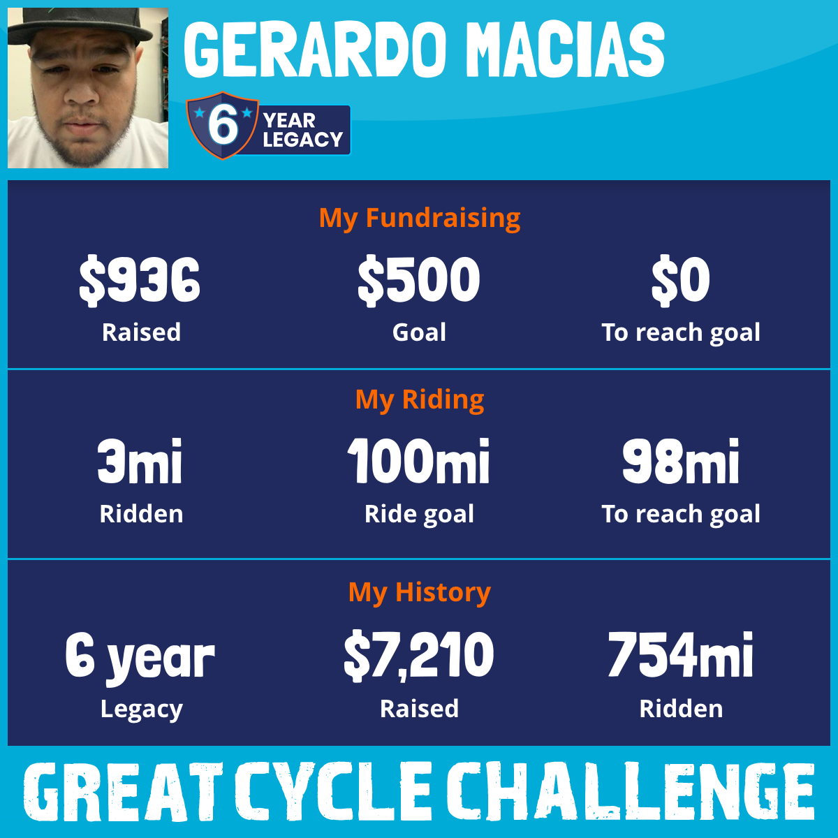 100 mi Ridden$1,849 Raised2023