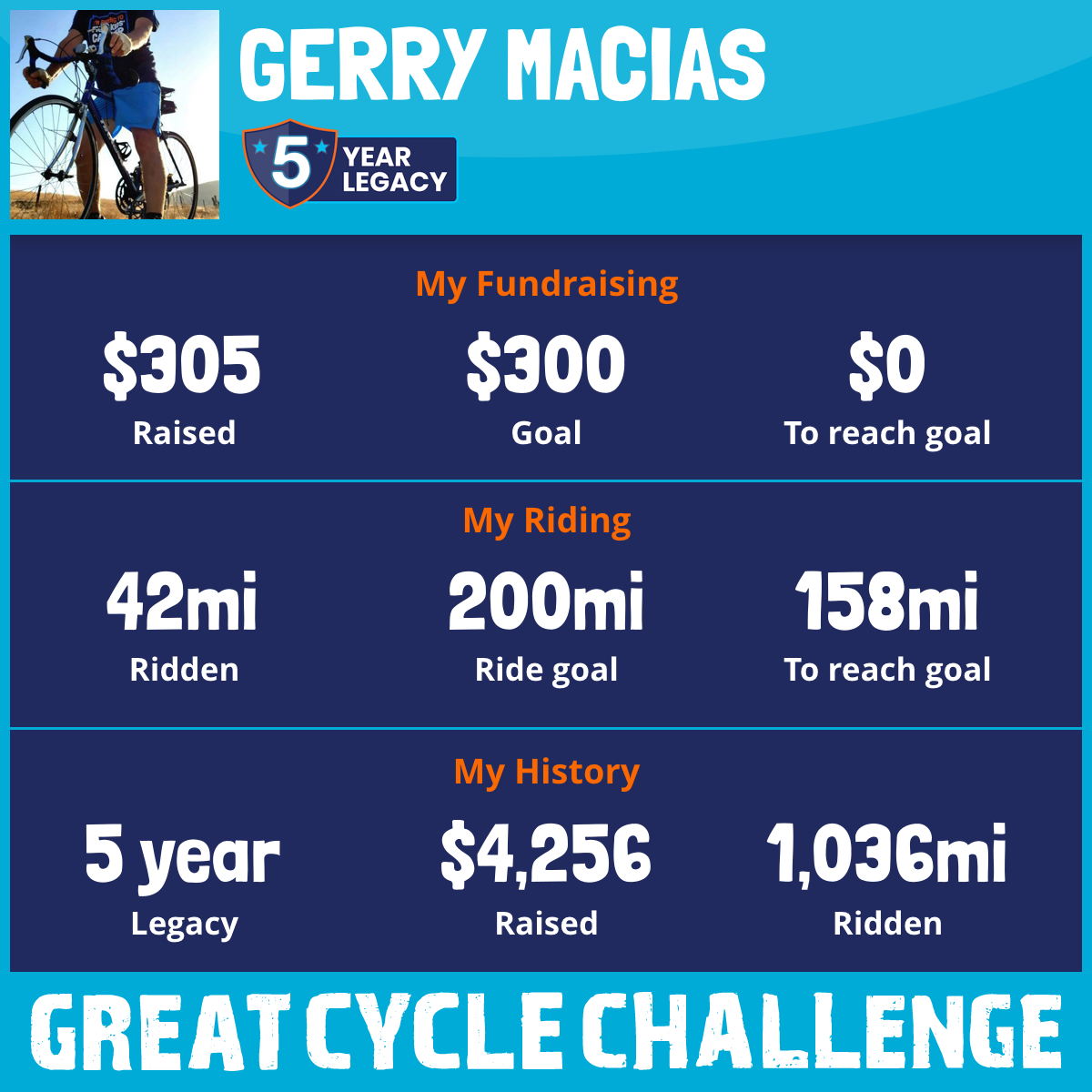 187 mi Ridden$603 Raised2021