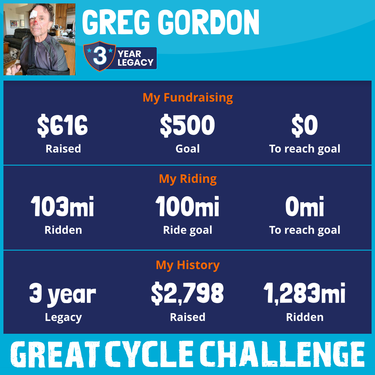 409 mi Ridden$1,432 Raised2019